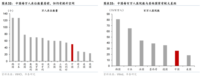 服务业相关基础设施方面,我国酒店、餐饮、医疗养老等消费基础设施均呈现“总量偏高、人均偏弱”的整体格局,相较于全球其他发达国家仍有5成左右的投资潜力。具体而言,