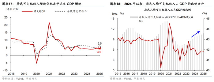 提振总需求之外,随着大件可选消费增长有所“透支”,补贴服务消费的短期拉动效应可能较明显。如我们在《以旧换新的成效评估和后续展望》(2025/6/21)中所提出的,如果部分刚性消费需求此前因为商品以旧换新被“挤出”更多、本身更具反弹动力的消费(如必需品消费、新消费、服务消费等)、尤其是高频服务消费如果有进一步补贴政策,则提振效果可能事半功倍。我国处在服务消费持续扩容的阶段,服务消费具有较大的增长潜力,同时,相较于耐用消费品,服务消费相关补贴的“透支”效应更少,对于稳定就业、增加收入等效果更佳。