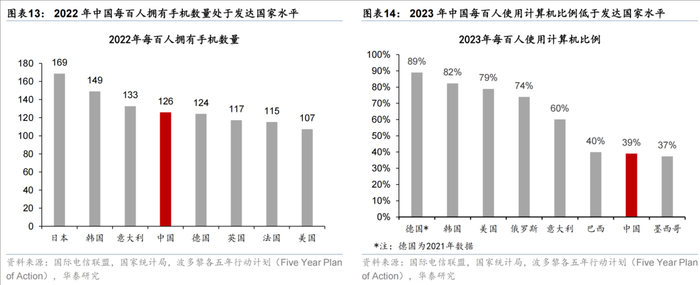 从不同品类消费看,中国的汽车/计算机人均保有量仍有提升空间,而手机/家电等人均保有量或已接近发达国家水平。而服务消费中,中国卫生健康、住宿餐饮等行业增加值占GDP比例提升空间较大。中国餐饮住宿增加值占GDP的比例(1.8%)亦低于美国(3.3%)、日本(2%)和英国(2.7%)。
