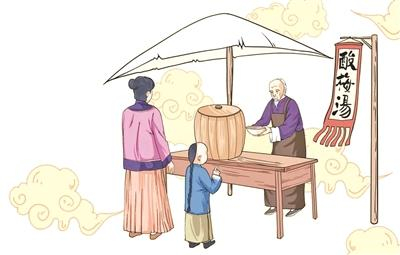 作家陈建功在其《寻找酸梅汤》一文中说:“盛夏溽暑,卖酸梅汤的可称为旧京一景:大街小巷,干鲜果铺的门口,随处可见卖酸梅汤的摊贩。”