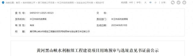 黄河黑山峡水利枢纽建设有新动向:拟选址披露,拟用地约119公顷