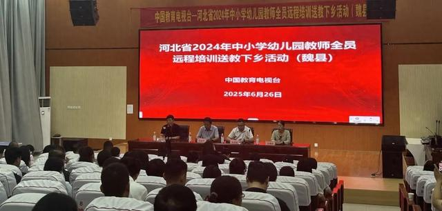 中原新闻网邯郸讯(郭付林 郭海贞)6月26日,河北省2024年中小学幼儿园教师全员远程培训送教下乡活动在魏县第八小学成功举行。活动由县教体局一级主任科员刘战平主持。中国教育电视台河北项目办主任李荣辉,河北师范大学副教授张攀峰,县教体局师训中心有关负责人,各乡镇中心校、县直及局属各学校优秀教师代表等共计200余人参加活动。
