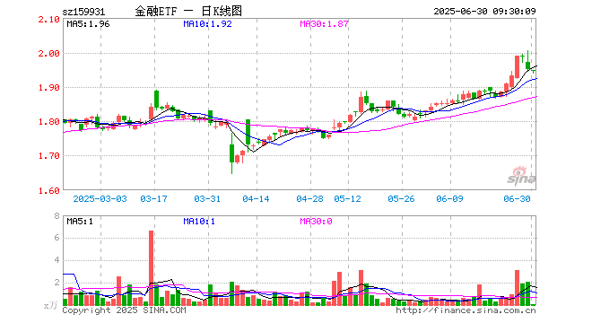 6月30日,金融ETF(159931)开盘跌0.05%,报1.948元。金融ETF(159931)重仓股方面,中国平安开盘涨0.25%,招商银行跌0.19%,兴业银行跌0.59%,东方财富涨0.04%,中信证券涨0.11%,工商银行跌0.27%,国泰海通跌0.10%,交通银行跌0.25%,农业银行跌0.51%,江苏银行跌0.58%。
