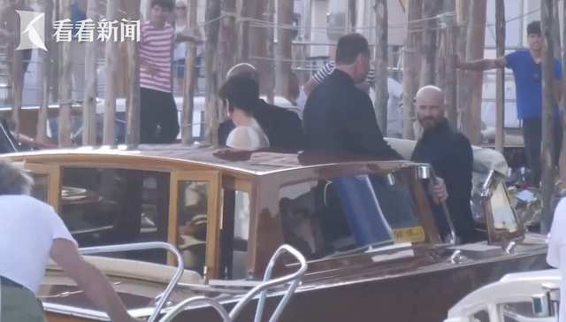 婚礼现场安排了约30艘贡多拉接送宾客,整条运河都被送宾客的船只堵塞,出于安全考虑当地警方还部署了大量警力。