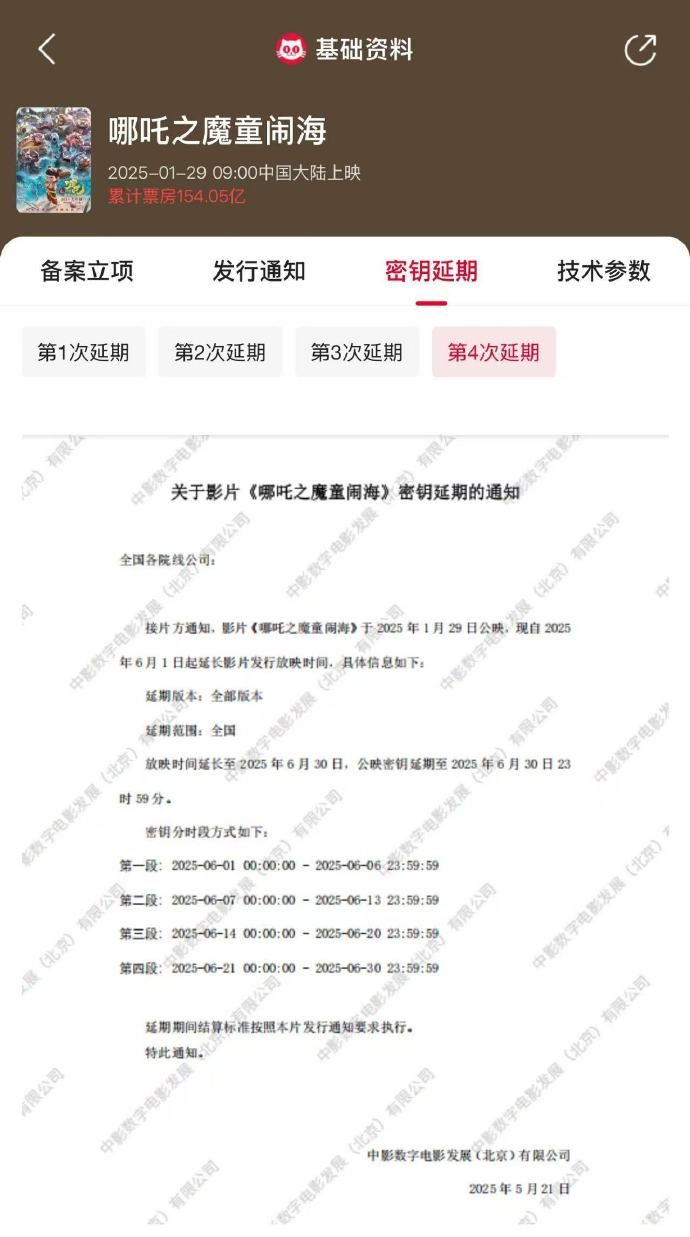 此前,《哪吒2》密钥曾延期四次。