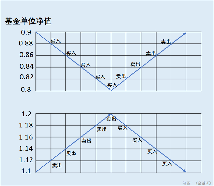 资金使用效率方面也存在明显不足。继续上文的例子,当基金价格长期在0.9-1.1元区间窄幅波动时,暂无需进行操作,而此时则有许多资金仍然处于闲置状态。