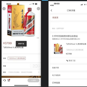 不过在次日,供应明显大幅增加,开售1小时内始终显示有库存,由仁怀市一自营门店发货。