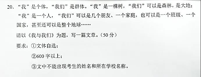 要求:①文体自选;②600 字以上;③文中不能出现考生的姓名和所在学校名称。