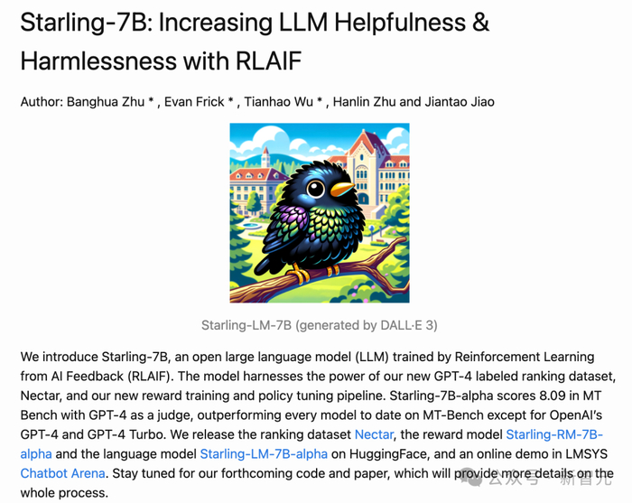 Starling-7B使用团队创建的开源高质量偏好数据集Nectar,以及创新性的奖励模型训练和策略模型微调算法进行训练。