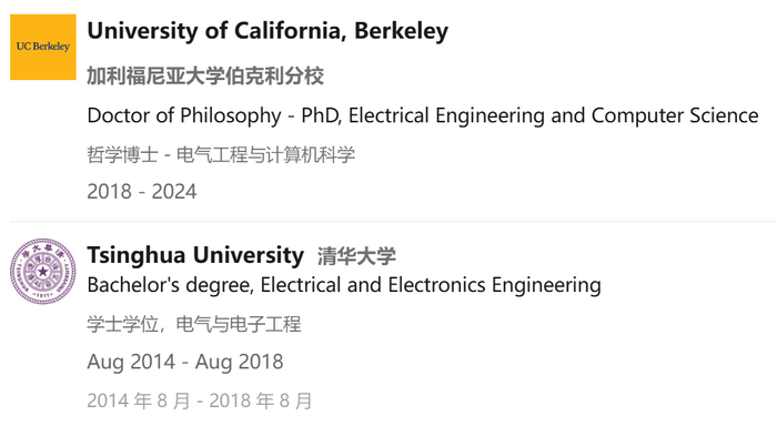 此前,他在加州大学伯克利分校电子工程与计算机科学系(EECS)获得博士学位,师从Jiantao Jiao教授和Michael I. Jordan教授。
