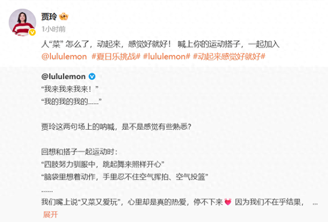 6月30日,lululemon官宣导演、演员贾玲和游泳世界冠军汪顺为品牌大使。