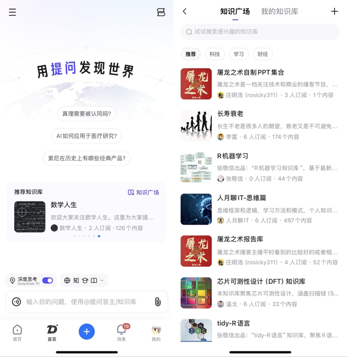 作为立足于知乎社区的AI搜索工具,知乎直答已经历经多次产品迭代,包括支持搜索结果直接溯源知乎答主真实创作,接入DeepSeek提升思维深度与推理能力等。在知识库功能模块,知乎直答显示出社区的独特优势。