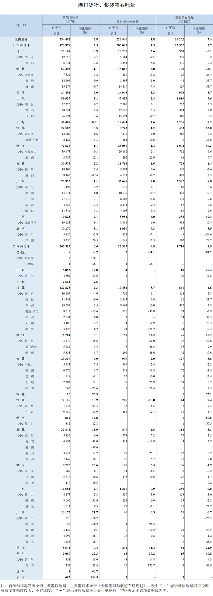 2025年1-5月港口货物、集装箱吞吐量