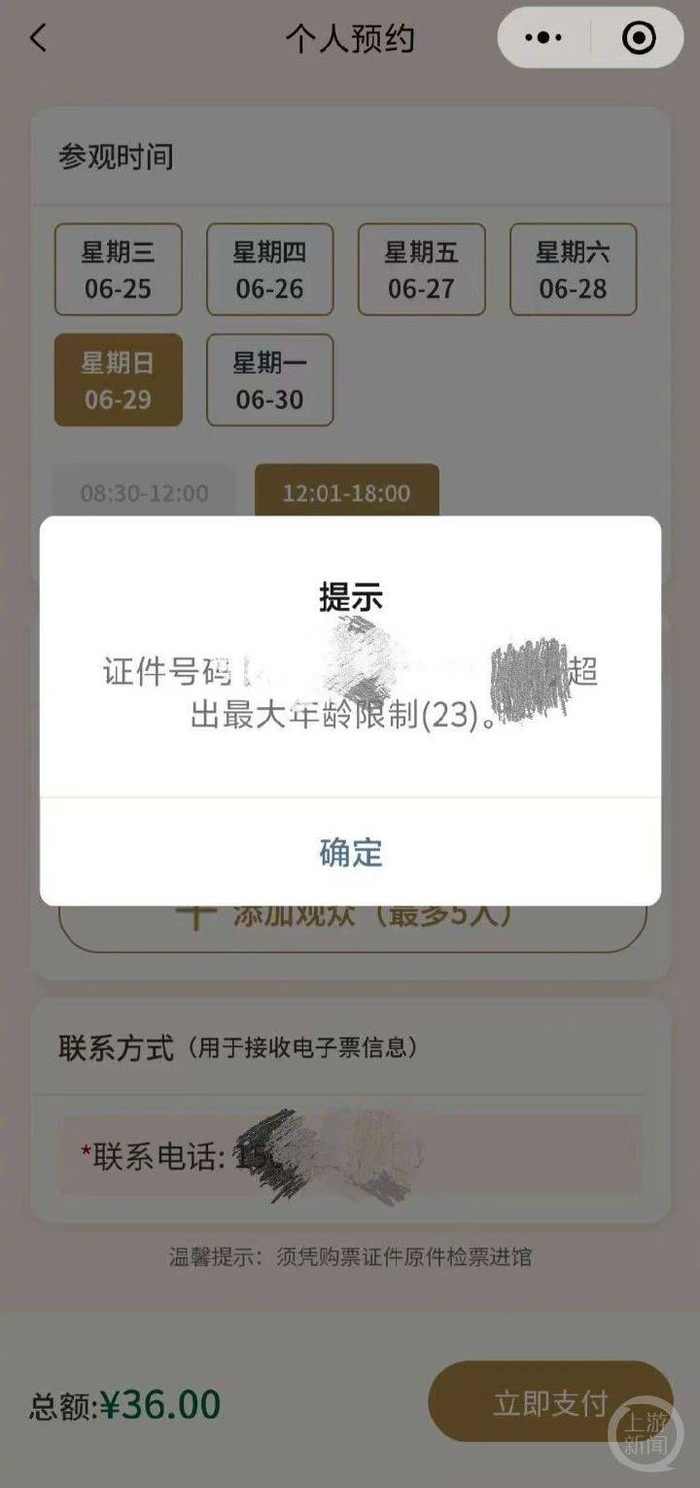 同时,工作人员表示:“如果您是全日制大学本科在校的中国学生,并且年龄超过23周岁,您需要先用身份证正常购买一张72元的普通票,参观当日先不要着急入园,先去人工窗口找工作人员,给他出示您购买的普通票记录,以及您学信网上的学信认证报告,和您本人的身份证原件。待现场人工窗口审核结束,如果符合规定的,您再把这张票退了,他们再给您现场办理学生票。 ”