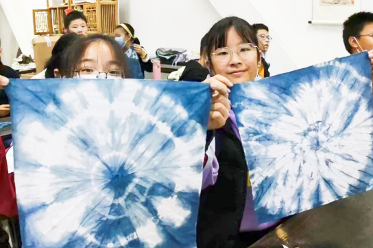 体验馆藏文物与传统扎染技术融合,可以通过提炼文物元素进行艺术扎染。
