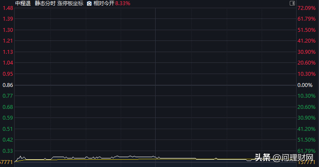 6月30日,中程退(300208)进入退市整理期首日低开72.09%,至收盘股价报收0.26元,跌幅69.77%,当日成交1673万元。