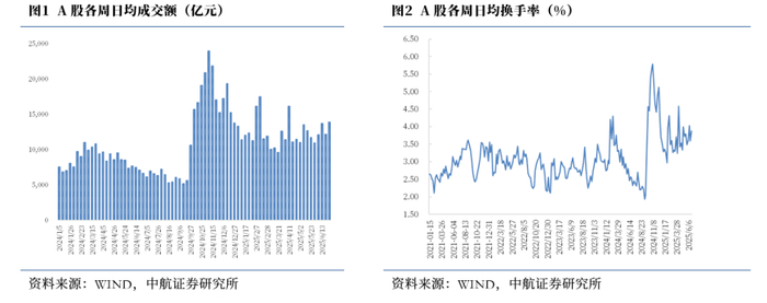 本周(2025.6.23-2025.6.27)A股日均成交额13899亿元,环比+14.39%;日均换手率3.88%,环比+0.29pct,本周,市场活跃度有所提升。