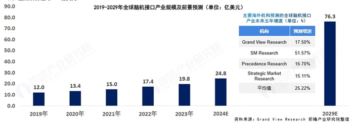据Grand View Research数据,全球BCI市场规模从2019年的12亿美元跃升至2023年的20亿美元,复合增长率超13%。