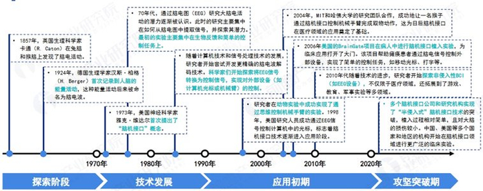 早在19世纪末,人类首次发现脑电活动;20世纪70年代,美国神经科学家雅克·维达尔提出“脑机接口”概念;21世纪后,随着半导体、人工智能和微电子技术的发展,BCI从理论走向落地,应用场景也被无限拓展,各国纷纷开始希望通过落地应用率先抢占行业技术高地。