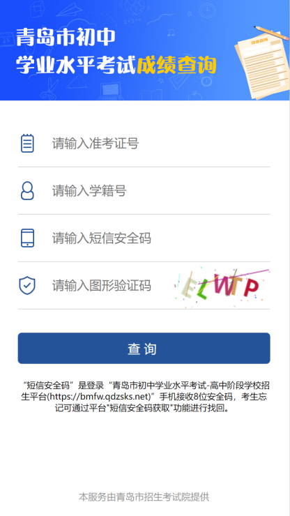 面向参加2025年青岛市初中学业水平考试考生提供成绩及录取查询服务。