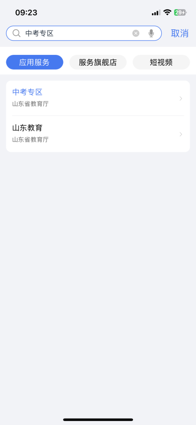 地区选择青岛,在搜索栏里输入“中考专区”,点击进入“中考专区”