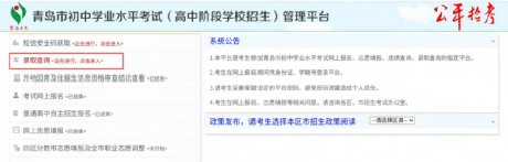 进入中考平台,点击“录取查询”,进入“录取查询”页面。