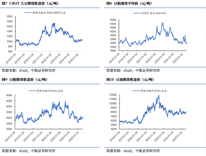 豆粕:豆粕现货平均价周环比跌3.72%,豆粕期货价格周环比跌4.26%。