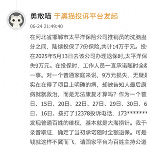 “业务员说随时能取本金,每年还能拿分红!”6月24日,黑猫投诉平台上一则针对太平洋寿险的控诉引发关注。这位2018年投保“金佑人生终身寿险(分红型)”及附加重疾险的投保人愤怒指出:不仅客服告知保单“保终身根本取不出钱”,连太平洋保险内部处理投诉的工作人员最初都以为“分红可以拿出来”。直至查阅合同条款才确认:所谓“分红”实为增加保额,无法以现金形式提取。“连自家员工都被条款绕晕,普通人怎能不上当?”他在投诉中写道。