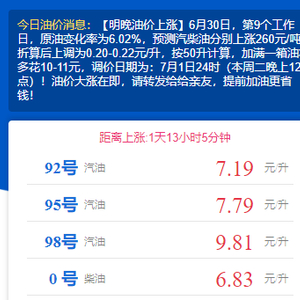 7月1日24时,油价或将大涨,加满一箱油或多11元