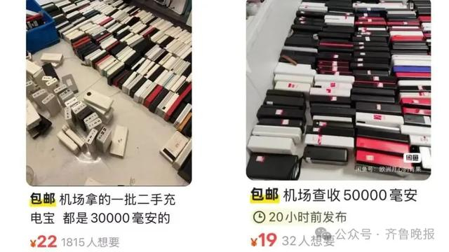 据报道,二手平台涌现大批标榜“机场拦截”的充电宝,以15至30元超低价售卖。