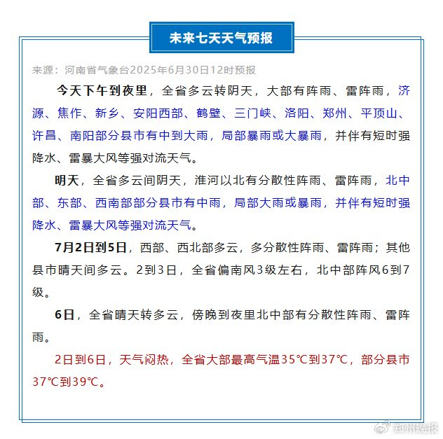 局部暴雨或大暴雨!河南强降水再上线