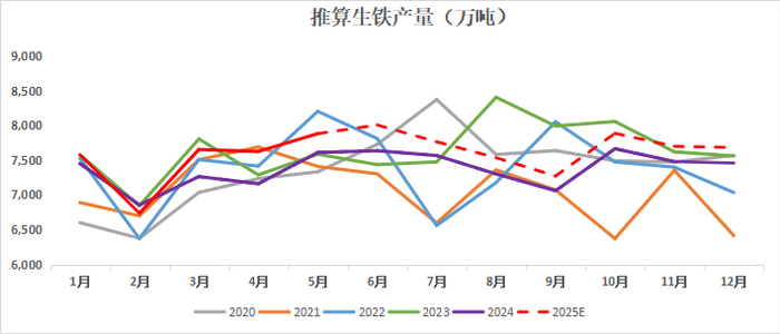 2025年生铁测算预计产量为9.135亿吨,预计同比增长3.12%。