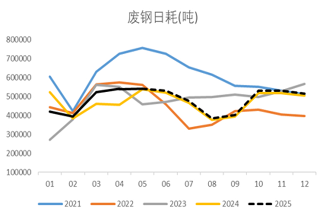2025年1-5月废钢日耗季节性与常年相似,废钢需求整体处于扩张趋势中,预计下半年废钢日耗与去年同期持平。