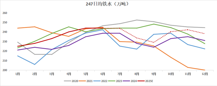 展望25年下半年,伴随着新增产能释放和下游需求或将下滑的趋势,铁矿供需或将转向宽松,库存或将小幅增长。
