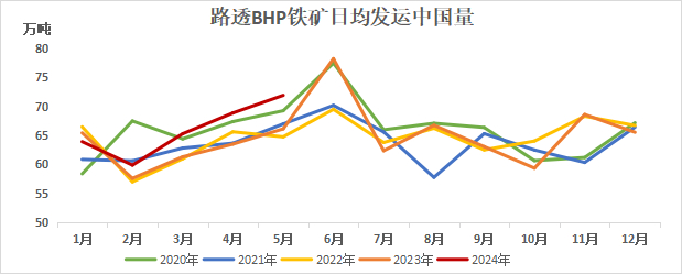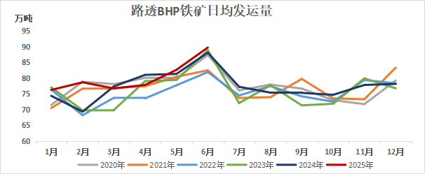1-6月BHP日均发运量80.3万吨/日,同比78.6万吨/日增2.2%。