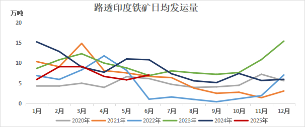 非主流地区中,1-6月印度铁矿发运量低位回升,日均发运7.3万吨/日,与去年同期的11万吨/日相比大幅下降。25年印度在国际价格走弱,关税压力和自身内需增长的情况下,出口量大幅降低,出现产量增长但出口下降的现象。加拿大因新技术降低成本从而大幅提高了出口量,南非的铁矿出口增量则主要在于铁路运力优化所致。