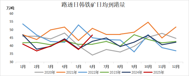 预计2025年下半年进口矿增量主要体现在澳矿和巴矿,受钢材价格触底回升,需求总量具备一定韧性,叠加当前企业铁矿石库存相对仍偏低,2025年铁矿石下半年进口量增幅或将改善,总进口量或达12万亿吨以上。