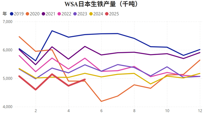 24年日本铁水累计6102万吨,同比降201.7万吨或3.31%,在日本央行加息预期下,25年生铁产量或仍维持低位。