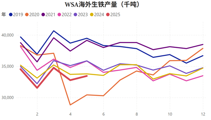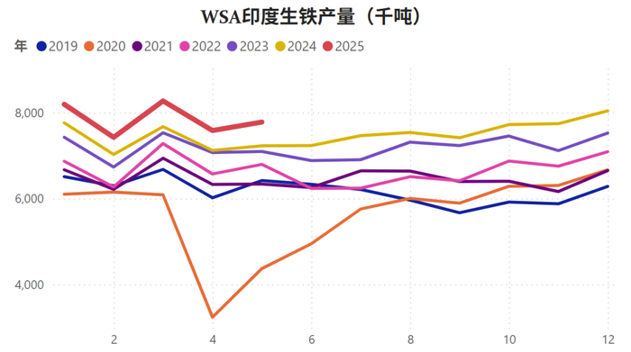25海外生铁总量普遍下降,印度则继续保持较快增长