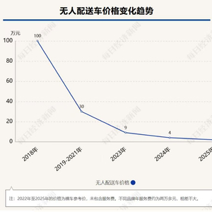 《每日经济新闻》记者近日调查发现,2018年,一辆应用于末端配送的无人配送车包含服务费在内的价格约100万元;2019年至2021年,物流无人配送车包含服务费的价格则从百万高位降至20万至30万元。