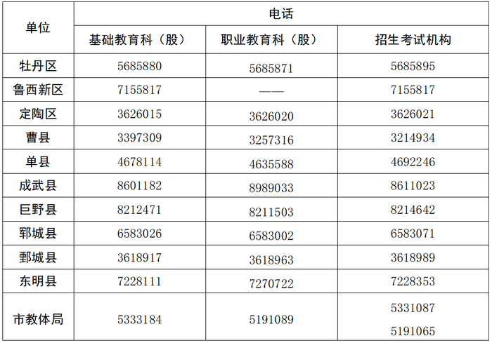 2.咨询报名资格、职教高考班、中职学校招生等问题,请拨打职业教育科(股)电话。