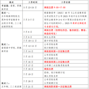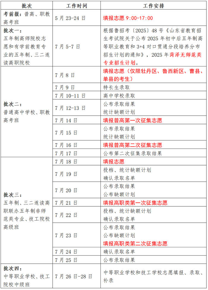 菏泽市2025年高中阶段招生志愿填报、录取时间安排