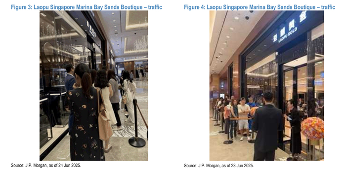 摩根大通最新发布的报告表示,对老铺黄金新加坡首店进行实地调研后发现其表现超预期。该店平均每小时成交4-10张订单,平均每位顾客停留1小时深入了解品牌和产品。预计老铺黄金2025-2027年销售额和净利润复合年增长率分别达到68%和76%。