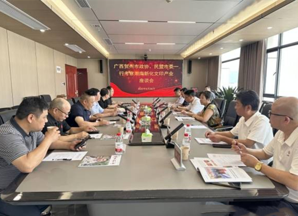红网时刻新闻6月30日讯(通讯员 成荣)6月26日,广西贺州市政协副主席、民盟贺州市委主委何贞树率队赴湖南省新化县开展文印产业专题调研,深入考察新化县文印产业园及洋溪文印小镇,并与当地政府、企业及行业代表座谈交流,共商湘桂两地文印产业产教融合合作大计。此次调研旨在贯彻落实国家产教融合发展战略,推动文印产业转型升级与职业教育深度结合,为贺州市与湖南新化文印行业搭建协作新平台。实地走访:探秘“中国文印之都”发展经验调研首站,贺州市考察团一行在新化县文印产业服务中心主任梁国友等陪同下,先后参观新印科技、凯尔影印、中设智印等龙头企业,详细了解新化文印产业从传统复印店经营向高端设备制造、技术创新、全链条服务的转型历程。文印产业园内智能化生产线与自主研发技术给考察团留下了深刻印象。下午,考察团赴洋溪文印小镇考察,走访文印总部大楼及全国文印总商会,深入调研文印小镇的产城融合规划与校企合作实践。洋溪镇作为新化文印产业的发源地,经过几十年的发展形成了覆盖全国、辐射全球的文印商业网络,其“一业带多产”的发展路径为贺州探索特色产业与职业教育协同发展提供了新思路。座谈共商:共绘湘桂产教融合蓝图