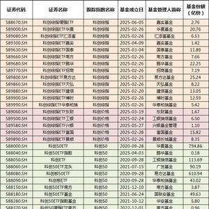 科创板相关ETF大全(持续更新版)