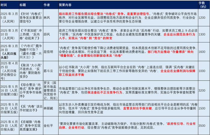 人民日报(含人民网)自今年3月以来关于反内卷的报道;赶碳号整理