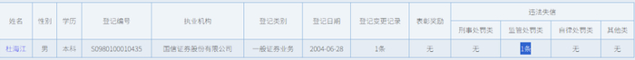 目前,中证协已“查无此人”,推测是在收到监管处罚后离职注销。