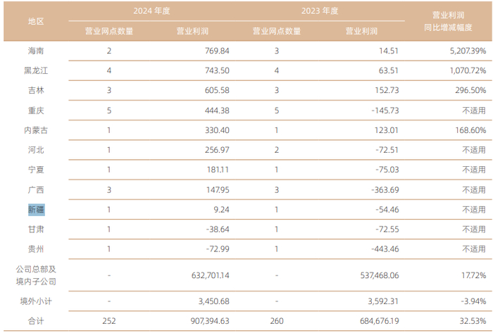 2020年,新疆区域的营业收入尚为1,004.42万元,营业利润为73.85万元。从2021年到2023年,创收逐年下降,创利连续为负。2024年,新疆区域营业收入回升至645.47万元,营业利润也由负转正,但仅为9.24万元。