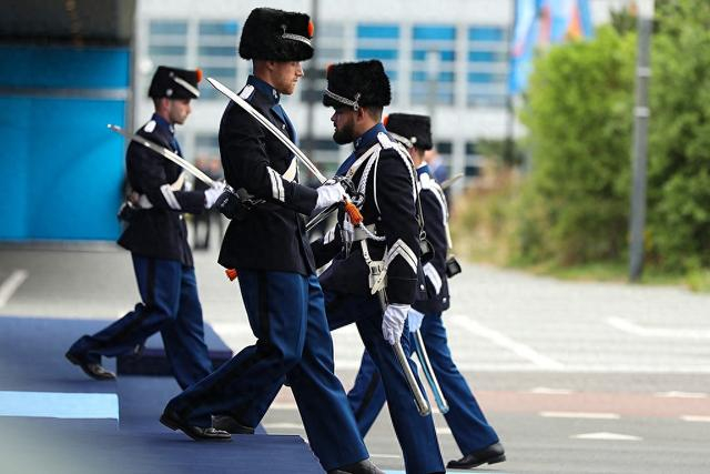 当地时间2025年6月25日,荷兰海牙,荷兰皇家宪兵队在海牙世界论坛北约峰会现场 视觉中国
