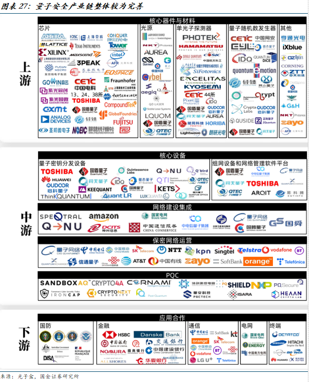 量子安全作为当前实用化进程最快的量子信息技术领域,已形成清晰的产业链架构,核心价值集中于中上游的核心零部件及设备。